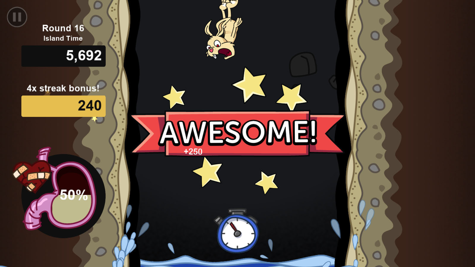 Fatty Rabbit Hole is an action arcade game where you play as a rabbit who loves junk food, and is falling down a hole. The goal is to eat as much junk food as you can, while avoiding gross healthy foods, obstacles, and an assortment of dastardly foes. How long can you survive?